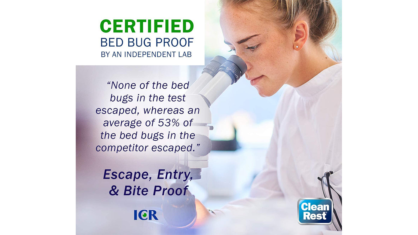 The CleanRest Pro Max Mattress Encasement is designed to not only protect your mattress from dust mites, spills, perspiration, night-time accidents and normal wear-and-tear, but also provides protection against bed bug infestation with its patented Zip-and-Click Technology.